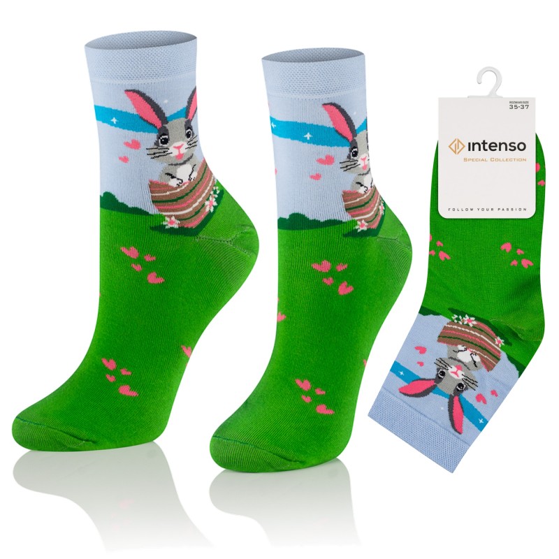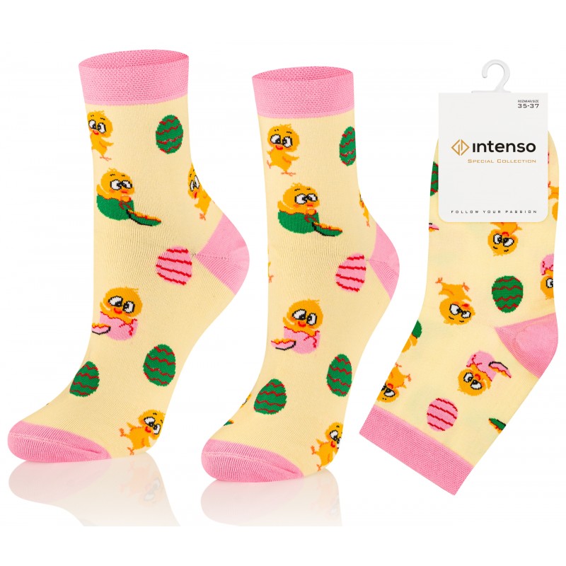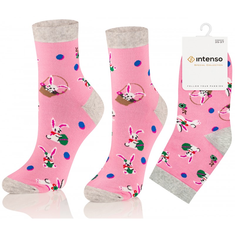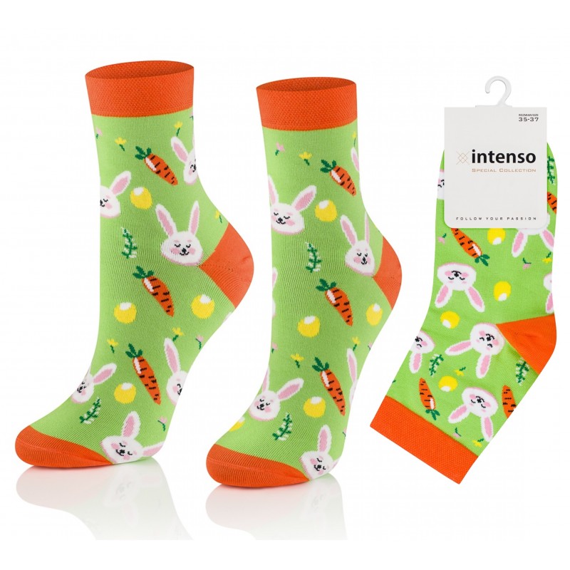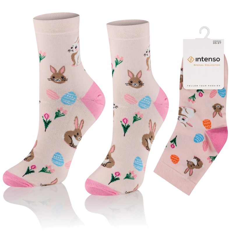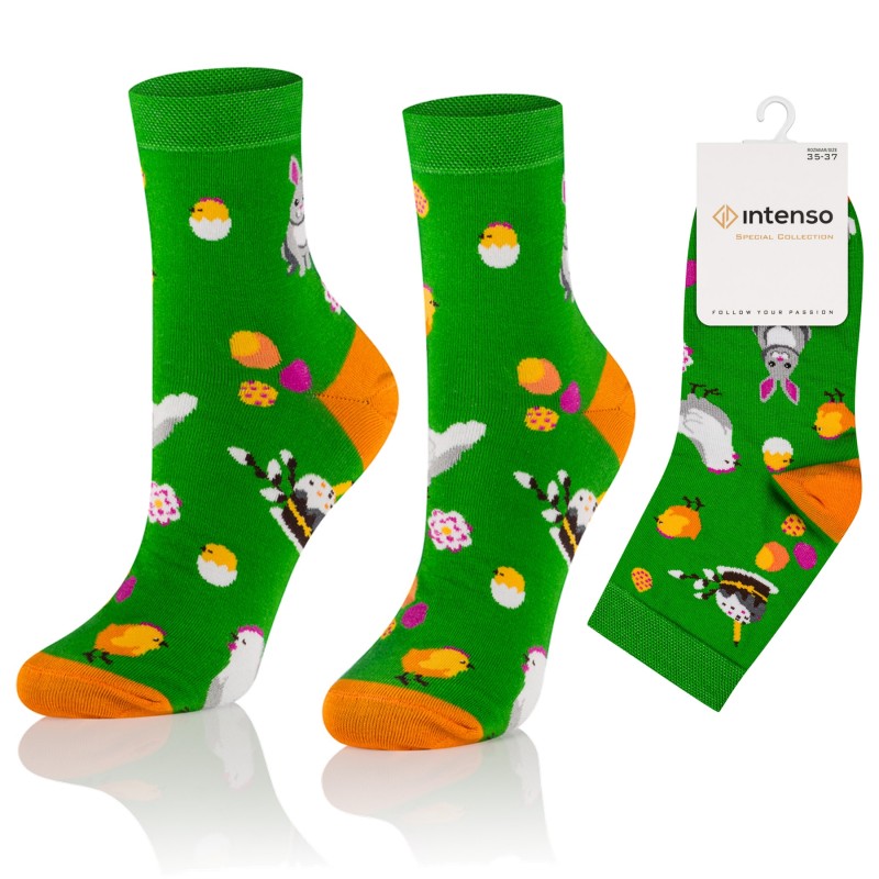 Linia skarpet świątecznych stworzona w oparciu o nowoczesne wzornictwo oraz najwyższą jakość wykonania, zaprojektowana przy współudziale influencerów i blogerów modowych. Skarpety Wielkanocne Intenso Special będą świetnym dodatkiem do świątecznej stylizacji lub idealnym pomysłem na prezent. Najwyższej klasy przędza bawełniana z certyfikatem OEKO-TEX STANDARD 100 gwarantuje jakość wykonania oraz zapewnia komfort użytkowania.