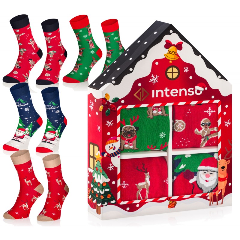 Skarpety z kolekcji świątecznej wyprodukowane z najwyższej jakości surowców przy użyciu nowoczesnych technologii. Zapakowane w efektowne, prezentowe pudełko "domek" Intenso.