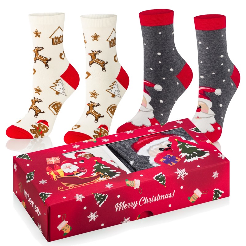 Skarpetki dziecięce z kolekcji świątecznej wyprodukowane z najwyższej jakości surowców przy użyciu nowoczesnych technologii. Zapakowane w efektowne, prezentowe pudełko Intenso.