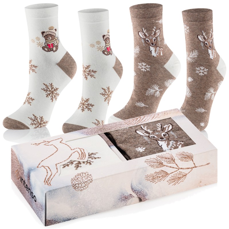 Skarpetki świąteczne damskie 2-pak Zestaw Prezentowy Beżowy Rozmiar: 36-40